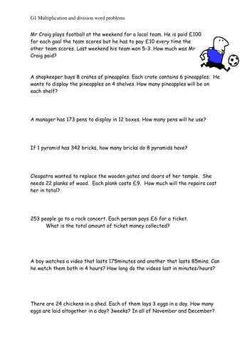 This resource gives your students practice with multiplication and division word problems. Find the cost of such 2035 chairs. Addition and subtraction problems addition and multiplication problems multiplication and division problems problems with all 4 operations. How much did he save each week of the year? They were created for a year 6 class.